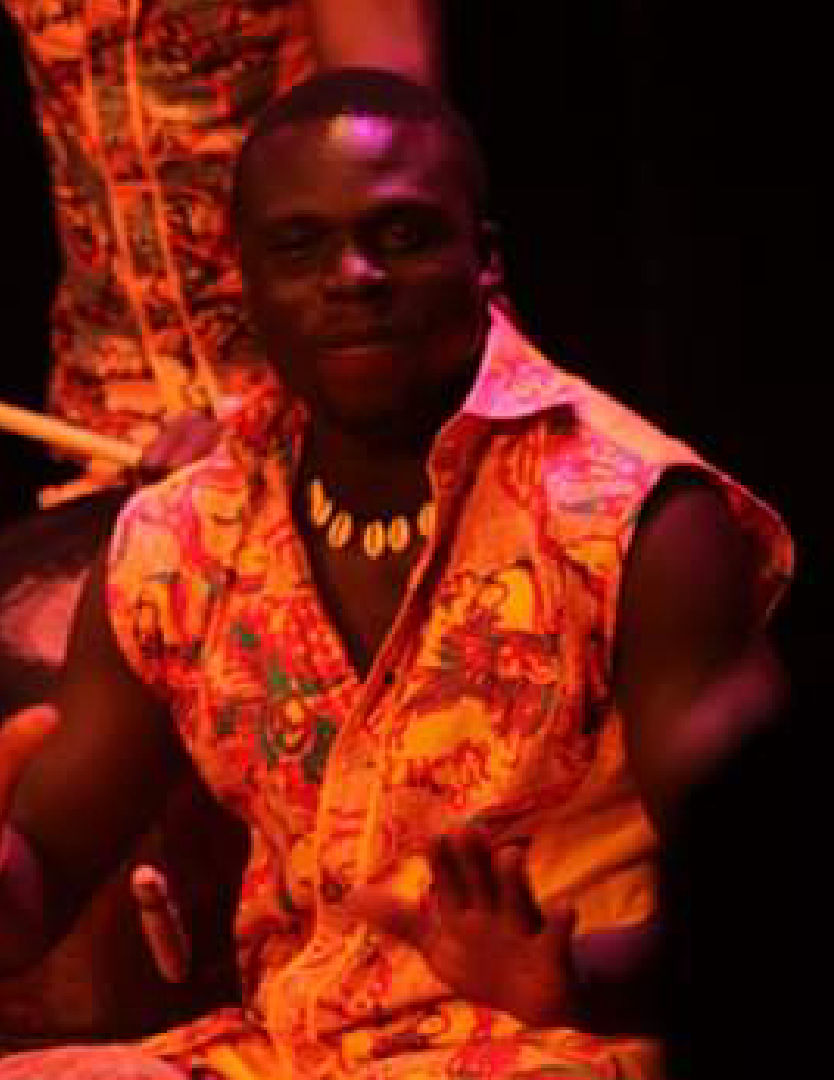 He can play fomtomfrom, gembe, gome, kpanlogo drum and xylophone. He can dance, teaches dance and has experience in directing.